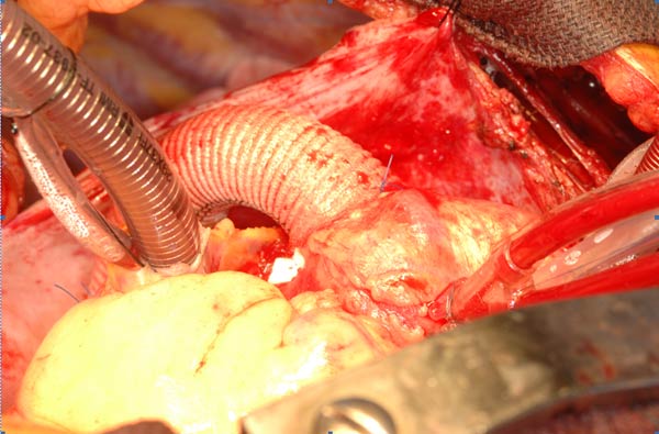 Following separation from cardiopulmonary bypass, transesophageal echocardiography is performed, to confirm adequate antegrade flow through the graft and to confirm the absence of intracardiac air. Photograph of graft in position is shown in Figure 5.