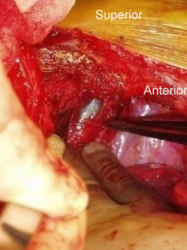 | Figure 3: Posterolateral Thoracotomy with Rib Excision: Intercostal Muscle flap for buttressing of the posterior tracheal repair |