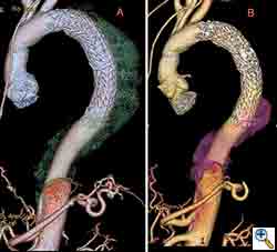 Long-term follow-up is essential in these patients. It is unclear whether thrombosis of the false lumen and stabilization of the aortic diameter translates into long-term prevention of aortic rupture. Mid-term results suggest that there is adequate prevention of aneurysm rupture, but larger numbers of treated patients will be needed in order to assess for statistical success. [10] In the meantime, endovascular repair should be considered in high-risk surgical patients with chronic Type B aortic dissections with associated aneurysms of the false lumen. Optimal outcomes are achieved by following a set of endovascular principles which are different than those used for degenerative aneurysm repair.