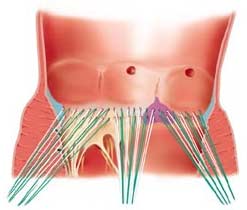 Bicuspid Valve After excising the diseased valve leaflets, determine the shortest distance between the left and the right coronary ostia. |