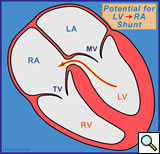 - Transesophageal echocardiography (TEE) is helpful to sort out whether this is a direct or indirect left ventricular-to-right atrial shunt. If there is tricuspid valve insufficiency, TEE is helpful to assess the repair.