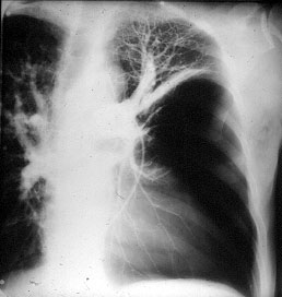 Surgery is generally indicated to modify the functional status of the underlying lung by (1) relieving restrictive changes; (2) increasing compliance and airway caliber; (3) improving V/Q ratio; and (4) decreasing the physiologic dead space. These goals are easy to obtain in patients with enlarging bullae and minimal underlying lung disease. These are the best candidates for surgery and optimal results can be expected. Surgery is also indicated to treat complications related to the bullae, such as pneumothorax, true infection (Figure 3), hemoptysis, cancer (Figures 4, 5), and pain.