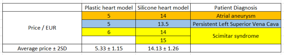 The models supported multidisciplinary preoperative planning and fellows’ training, receiving uniformly positive qualitative feedback from surgeons and cardiac imaging specialists. The per-model material costs and production times are summarized below and benchmark favorably against literature reports, which indicate costs of €80–€120 per model and approximately 15.6 hours from image to model completion (1, 2).