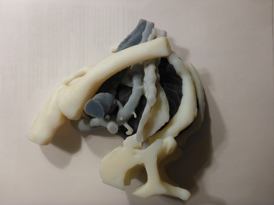 | Figure 4: Three dimensional model of superior sulcus tumor with involvement of T1 nerve root. | Figure 5: 3D printed thoracic model to rehearse surgical approach to tumors. |