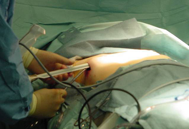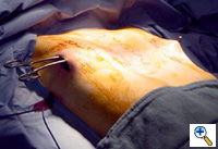 We utilize the endoscopic saphenous vein harvesting equipment from our adult cardiac program to create the tunnels endoscopically, under visual guidance (Figure 6). We have found similarity between the tunnel necessary for endoscopic saphenous vein harvesting and the tunnels for minimally invasive pectus repair and we feel that the improved visualization afforded by this technique might decrease the potential for cardiac or mammary artery injury during minimally invasive pectus repair.