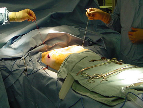 Our initial 3.5 year experience with minimally invasive endoscopic pectus excavatum repair utilizing this modification of the "Nuss" technique involved 31 patients (age: range = 4.4 to 31.0 years, median = 15.0 yr, mean = 14.5 yr; weight: range = 18 to 120 kg, median = 52 kg, mean = 56 kg) [10]. Median hospital length of stay was 4 days (range 3 - 10 days, mean = 4.6 days). Pneumothorax occurred in 5 patients with tube thoracostomy placement in 3. One patient developed delayed bilateral pleural effusions requiring drainage. Two patients developed evidence of sterile seroma formation at the skin incision several months after minimally invasive repair of pectus excavatum. In one patient, this seroma formation was related to local trauma; the seroma developed spontaneously in the second patient. In both patients, the seromas resolved within 10 days with non-interventional conservative medical treatment (warm compresses and non-steroidal anti-inflammatory drugs). Neither patient required drainage of the seromas. No other complications occurred.