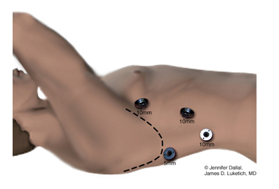 | Figure 1. Thorascopic port placement for MIE. |