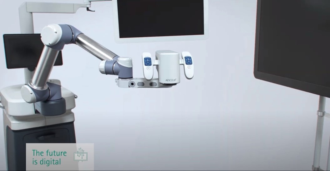 Fig 1: The Aesculap Aeos® Robotic Digital Microscope combines the ergonomic and educational benefits typically found in “exoscopes” with the high-quality imaging.