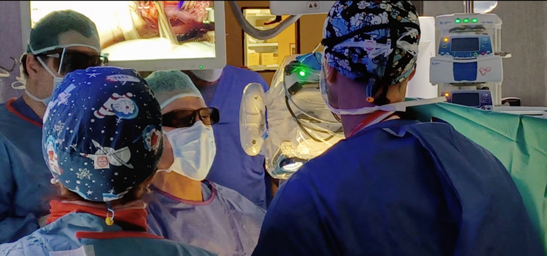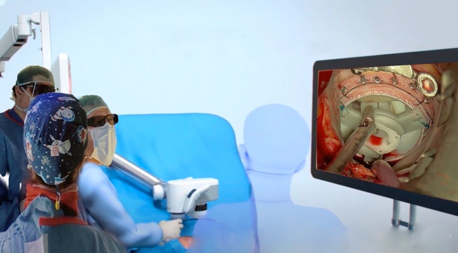 Fig 3: The heads-up display can be viewed simultaneously by all healthcare workers in the operating room with 3D glasses.