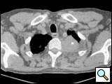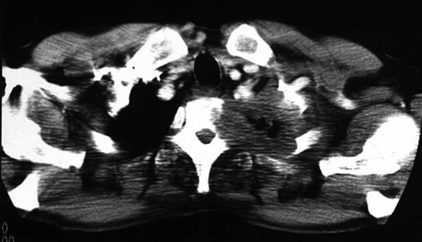 Vertebral body invasion (Figure 17) has traditionally been considered a contraindication for surgical resection in SST. The combined efforts of thoracic surgeons and neurosurgeons specialized in spine stabilization, and recent advances in spinal instrumentation, have led to the development of surgical techniques for resecting vertebral bodies with malignant involvement. As a rule, up to one-quarter of the vertebral body may be removed without affecting the stability of the column. For SST extending into the intervertebral foramina without intraspinal extension, Dartevelle and others [18] described a technique for radical resection that combines the anterior transcervical and posterior midline approaches.