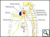 Several surgical approaches have been described for Pancoast tumor, ranging from posterior access [11] to anterior accesses [15-17], alone or in combination. The classic posterior approach popularized by Paulson and Shaw [11] gives excellent exposure of the posterior chest wall but does not allow safe, direct visualization and manipulation of more anterior anatomical structures forming the thoracic inlet. In particular, the management of invaded subclavian vessels (particularly the subclavian vein) is difficult and dangerous, often requiring an anterior approach. Therefore, a detailed knowledge of the anatomy of the apex of the chest and lower neck (Figure 3) and the availability of alternative approaches in their armamentarium are essential for surgeons managing these tumors.
