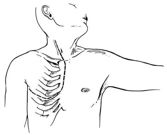 | Figure 8: Incision for left hemi-clamshell with supraclavicular extension |