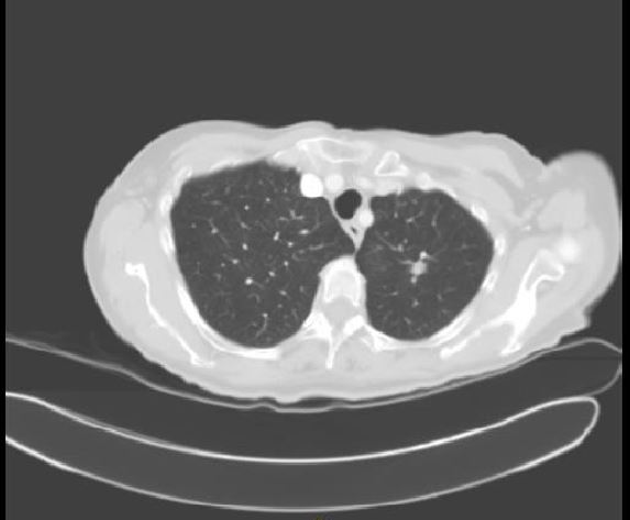 This video shows a 73-year-old woman with a past history of gastric adenocarcinoma in 2007 and a recent small intraparenchymaal undiagnosed nodule in the left-upper lobe with radiological growth. The PET scan showed only a SUV max of 2.5 gr/mL image in the left-upper lobe. Bronchoscopy and transthoracic fine-needle aspiration (FNA) were negative for diagnosis. Lung function tests were normal.