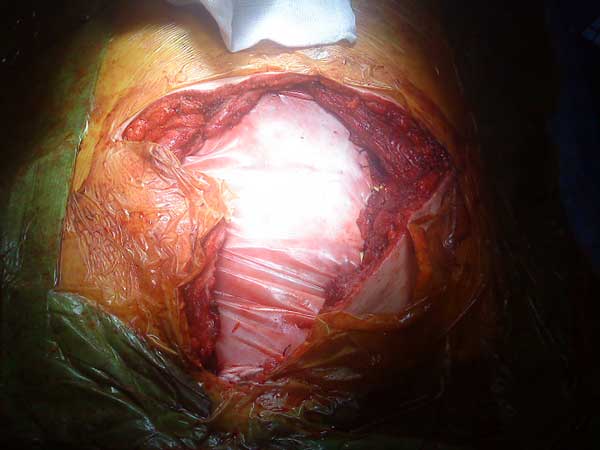 - It is advisable to put a patch over the implant to avoid lung or soft tissue herniation anteriorly or laterally, or scapula entrapment posteriorly.