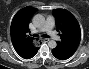 - Figure 2. CT scan of a patient with midthoracic diverticulum. The diverticulum fails to drain properly and has food particles in it.