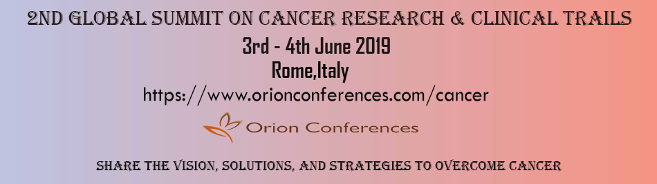 After an incredibly successful inaugural year, Orion Conferences completed successfully the International conference on Cancer Research held during July 19th – 20th Barcelona, Spain. (Orion GCC 2019) Now takes pleasure to announce and Invite you all to our prestigious 2nd Global Conference on Cancer Research & Clinical Trials during 3rd – 4th June,2019 @Rome,Italy The aim of the (Orion GCC 2019) is to present a wide spectrum of latest advanced treatments and research in the field as well as exploring new topics in clinical trials & development. The series of talks, poster presentations, workshops, discussions and networking events will keep participants engaged in learning and making new connections at this conference. There are a number of sponsorship opportunities available, including industry-sponsored activities. In addition, we would be happy to tailor a sponsorship package to your specific needs. Join us and be part of the Success….@Rome,Italy Tracks : Cancer Cell Biology, Breast Cancer, Oncology, Cancer Research, Central Nervous System Malignancies, Endocrine Cancers, Gastrointestinal Cancers, Genitourinary Cancers, Geriatric Oncology, Gynaecologic Malignancies / Gynaecological cancer research, Hematologic Malignancies , Head and Neck Cancers, Imaging and Radiation Oncology, Lung and other thoracic tumours, Melanoma, Pathobiology, Pharmacology and Molecular Mechanisms, Paediatric Cancers, Quality of Life, Sarcomas, Bladder Cancer, Colorectal Cancer, Kidney Cancer, Lung Cancer – Non Small Cell, Lymphoma