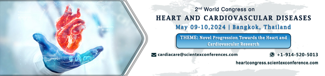 With the grand success of the Heart Congress 2023, We are pleased to announce our upcoming event the “2nd World Congress on Heart and Cardiovascular Diseases” which will be held in Bangkok, Thailand during May 09-10, 2024. This conference will examine the most recent developments and numerous research projects in the field of cardiology.