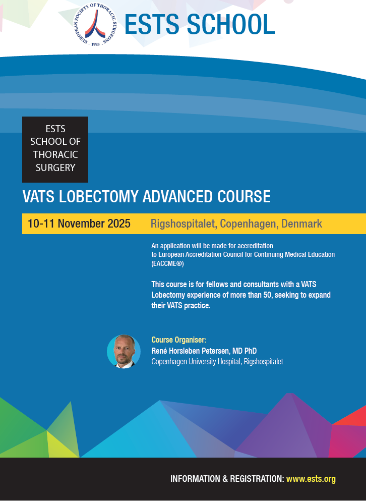 The European Society of Thoracic Surgeons (ESTS) is delighted to present the VATS Lobectomy Advanced Course, a specialized educational program tailored for experienced thoracic surgeons who are already performing VATS lobectomy and wish to further enhance their expertise.