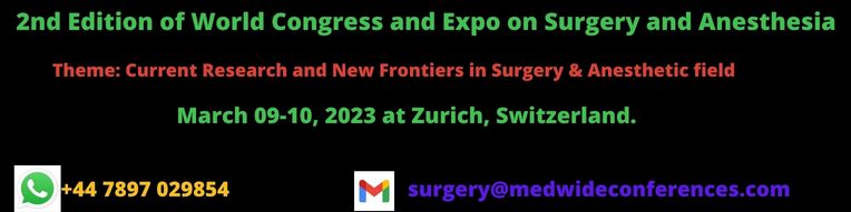 Medwide Group invites all surgeons, professors, assistant professors, researchers, and students to present their valuable research works on surgery at our congress entitled “2nd Edition of World Congress and Expo on Surgery and Anesthesia” which is planned to be conducted as a hybrid event on March 09-10, 2023 at Zurich, Switzerland.