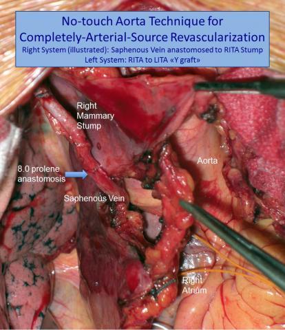 No-touch aorta coronary revascularization using right mammary artery stump as a source of flow for the saphenous vein