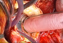 - The incorporated Dacron graft was drawn out and sutured to the transected distal arch.