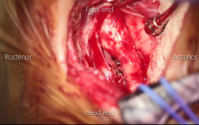 As described in the video, the patient was positioned in the right lateral position after induction with general anaesthesia. A femoral line and a radial arterial line were inserted before positioning to monitor the pressure difference across the coarctation and also to measure the adequacy of repair. Posterolateral thoracotomy was performed. The chest was entered via the fourth intercostal space. The lung was retracted medially, and the mediastinal pleura over the aorta was dissected. The distal arch and proximal descending thoracic aorta (DTA) was mobilized. The left subclavian artery, DTA, and arch of aorta were looped. During dissection, patent ductus arteriosus was present. It was not functional. It was doubly ligated and divided, to aid in mobilization of the aorta.