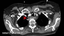 Perforation of Zenker’s diverticulum is a known risk of endoscopic procedures, and surgical transcervical repair or drainage is the standard management (1). Unresolved leak may require alternate means of drainage.