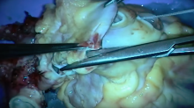 This patient was a 15-year-old male with hypoplastic left heart syndrome, status post extracardiac Fontan. The left pulmonary artery was stented and the tricuspid valve ring was placed years previously. This was the fifth time the authors re-entered the chest. A suitable donor became available, and the patient presented for orthotopic heart transplant.
