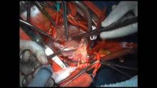 A 30-year-old old woman presented with palpitations and recurrent syncope for the past month. Her 2D echocardiogram showed a large intramyocardial mass arising from the lateral wall of the left ventricular (LV). Chest X ray showed bulge in the left heart border. MRI heart revealed a circumferential mass lesion arising from the posterolateral wall of the LV, suggestive of fibroma. The patient was taken up for surgery. Median sternotomy was done. On inspection, the authors could see a bulge in the high lateral wall of the LV. Obtuse marginal artery was seen arising away from the bulge. Aortic and bicaval cannulation was done. Cardiopulmonary bypass was established. Under cardioplegic arrest, the epicardium over the mass was incised and the incision was well away from the A-V groove. The mass was separated from the myocardium using sharp and blunt dissection. The mass had no myocardial infiltration. Through traction and counter-traction, the plane between the mass and myocardium was delineated by sharp dissection using 15 knife. Utmost care was taken to avoid entering the LV cavity and distortion of papillary muscles. The mass removed was approximately half the size of the heart.