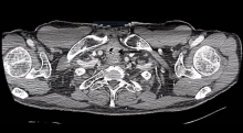 A 61-year-old man was treated for laryngeal squamous cell cancer with radiation in 2004. He presented again in 2012, with squamous cell cancer on the floor of his mouth. He underwent a right mandibulectomy with a free forearm flap, followed by radiation. A year later, he was found to have recurrent laryngeal cancer and underwent a total laryngectomy. Unfortunately, one of the margins was positive on the final pathology. The patient presented again in 2013 with obstructive symptoms and hemoptysis, synonymous with local recurrence at the tracheostomy level. There was no evidence of distant disease, and, in view of his relative young age and good functional status, he underwent a mediastinal tracheostomy with a right myocutaneous pectoralis flap.