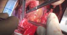 This patient was a 7-year-old female child evaluated for cyanosis and failure to thrive since birth. She had an arterial saturation of approximately 70% on room air. She was diagnosed with dextro-transposition of the great arteries (D-TGA) with a large subaortic ventricular septal defect (VSD) and severe pulmonary valve stenosis (PS). Her ventricles were both good-sized with normal pulmonary artery branch anatomy. She was referred to the authors for surgical repair.