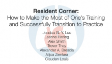 Resident Corner: How to Make the Most of One's Training and Successfully Transition to Practice [1]