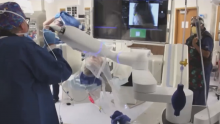 This video demonstrates robotic endoluminal bronchoscopy with Ion using cone beam CT. The patient was a sixty-six-year-old current smoker with a history of breast cancer in 1990 and recurrence in 2007. A surveillance PET/CT scan showed a 1.3 cm right upper lobe nodule with SUV 6.1. Repeat imaging after five months demonstrated increased size to 1.9 cm and SUV 23.4.