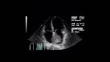 On these preoperative echo images we can appreciate the size of the myxoma and how it prolapses into the left ventricle through the mitral valve and leaves very little area for the blood to cross the valve.