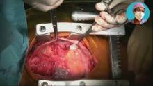 The patient featured in this video is a fifty-two-year-old woman with a previous history of liposarcoma of the thigh. She underwent surgery in 2003 and was on follow-up until 2013 with no evidence of disease recurrence. In January 2021, she was admitted to the hospital for increasing dyspnea and asthenia. A transthoracic echocardiography showed pericardial effusion and cardiac tamponade, so a pericardiocentesis was performed with 1.100 cc drainage and no malignant cells in the chemical analysis. The next day, a novel echocardiography showed a homogeneous solid mass in the pericardium. The magnetic resonance imaging (MRI) confirmed the presence of a solid tumor (6x5cm), with epicardial implant site on the right ventricle. Then a contrast-enhanced CT scan was used for presurgical planning, providing additional anatomic information of the tumor and relationships with the next structures. A 3D rendering was helpful while planning the different phases of intervention.