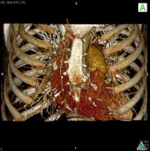 [10]Fig. 6B: Case 2. The 3D volume rendering images revealed the right-sided and horizontal anatomy of the ascending aorta; this suggested that the optimal incision was a right upper mini-thoracotomy approach through the 2nd intercostal space.
