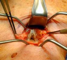The patient is taken to the operating room and given a general anesthetic with a single lumen endotracheal tube. The anesthetic plan should be reviewed with the anesthesiologist to reach agreement on the use of muscle relaxants. Some programs, our own included, prefer a deep general anesthetic without the use of muscle relaxants. Others prefer the judicious use of nondepolarizing muscle relaxants with careful monitoring to ensure complete reversal at the end of the surgical procedure.(Baraka, 2001) Typically the intravenous line is placed in the right arm and an arterial line is not routinely necessary. If the arterial line is used, the anesthesiologist is advised to use the left arm, as intermittent compression of the innominate artery throughout the operation may lead to false determinations of a low blood pressure. An inflatable bag is placed behind the shoulders to allow hyperextension of the neck once a general anesthetic has begun.