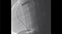 The second case involved a 15-year-old patient with the same clinical presentation as the first case. The intra-operative RVOT angiogram showed a maximal diameter of 33 mm, precluding the insertion of a trans-cutaneous Melody pulmonary valve. After a partial upper sternotomy, the RVOT was plicated, creating a tubular structure with a maximal diameter of 23 mm. The plicated RVOT acted in this way as the landing zone for a 22 mm trans-cutaneous Melody pulmonary valve implantation. The post-operative angiogram and echocardiogram showed perfectly functional pulmonary valve prosthesis with no stenosis or regurgitation.