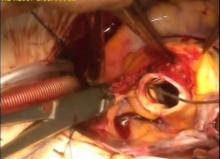 Case 2: A 25-year-old man presented with mild symptoms of chest discomfort with heavy exercise. Echocardiography demonstrated a RCA coming off the main pulmonary artery (MPA) and moderately reduced left ventricular function. CT angiogram confirmed the diagnosis showing the interarterial course of RCA between the aorta and main pulmonary artery. Cardioplegic arrest was performed with antegrade blood cardioplegia in both the aortic root and MPA. The MPA was incised, and the location of the orifice of the ARCAPA was identified. A coronary button was created and directly transferred into the anterior aspect of the ascending aorta. The MPA was then reconstructed using autologous pericardium. The patient had an uneventful recovery and is asymptomatic at 2 years of follow up.