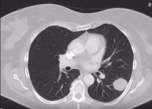 A 57-year-old patient was admitted for metachronous single metastases in the left lower lobe. The metastasis was located in the apical segment of the lower lobe and was 4.5 cm large. Three years prior, the patient had undergone rectum resection followed by adjuvant therapy. A uniportal videothoracoscopic posterior approach with a 4 cm single incision was used to avoid dissection through the fissure (especially as it may have been fused). The author also thought it reasonable to have all of the involved structures in front of the incision. The incision was made in the seventh intercostal space, behind the posterior axillary line. The patient had minor pain treated with non-steroid anti-inflammatory drugs in the postoperative period. The postoperative course was uneventful. The patient was discharged from hospital on the fourth postoperative day.
