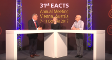 Filmed at the 2017 EACTS Annual Meeting in Vienna, Austria, Leanne Harling of Imperial College in London, UK, moderates a discussion on the future of coronary revascularization with David Taggart of the University of Oxford in the UK and Philippe Kolh of the University Hospital of Liege in Belgium. They discuss selecting patients for surgical rather than percutaneous revascularization, focusing on what has changed since the last ESC/EACTS guidelines on myocardial revascularization. They also discuss preoperative and intraoperative decisions about coronary artery bypass grafting, including bilateral internal mammary artery use and the ART trial, advances in vein grafting, on-pump versus off-pump surgery, and minimal access approaches.