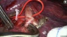 The segmental resection seemed to be oncologically satisfactory with sufficient margins. After the artery, they took the bronchus. They also sent to frozen section the station 12 lymph node to eliminate a more advanced disease than supposed. Care was taken not to injure the artery and V6 during dissection. After controlling the bronchus for S8, they clamped it and checked with an inflation test, which allowed them to verify S9-10 and S6 good ventilation. Just under the bronchus, they dissected the superior basilar vein. Before stapling the parenchyma, bronchovascular stumps were released to ensure removal in the operative specimen. The intersegmental lines were marked with electrocoagulation to separate S8 from S9-10 and S8 from S6.
