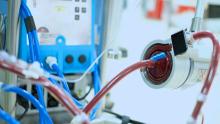 Step 10: With the femoral cannula out, begin the process of autotransfusion. Unclamp the venous and return tubing and gradually increase RPMs of ECMO circuit. Blood will drain down the venous tubing, which should be clamped before meniscus gets close to the pump.