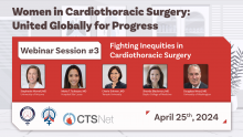 CTSNet recently hosted the third webinar in the ESTS Women in General Thoracic Surgery Committee and the Women in Thoracic Surgery webinar series, in which experts discussed addressing inequities for women in CT surgery. Watch the recording below for more.
