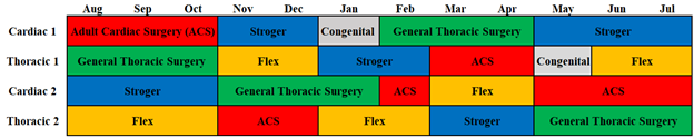 Our program supports two separate tracks in Thoracic surgery – a cardiothoracic track and a general thoracic track. We accept one fellow for each track per year, for a total of 4 fellows. Rotations are designed to meet the goals of each track, allowing some freedom in the second year to tailor the experience to each fellow’s particular interests.