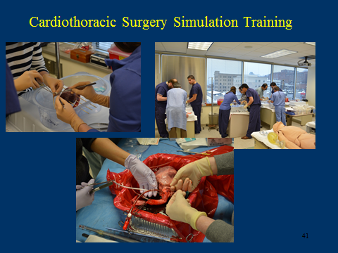 Cardiothoracic surgery residents complete a two-year training program with two residents per year in the cardiac stream and two residents per year in the thoracic stream. During the two-year program the cardiac stream residents complete 16 adult cardiac rotations, two pediatric cardiac, eight general thoracic rotations . During the two-year program the thoracic stream residents complete 18 general thoracic rotations; seven adult cardiac rotations and one pediatric cardiac rotation. During this training there is exposure to multi-vessel revascularizations, combinations of the valve repairs and replacements, congenital heart disease and acquired pediatric heart disease procedures, endoscopic techniques, including rigid bronchoscopy, flexible bronchoscopy and fluorescence bronchoscopy with associate advanced laser techniques and complex endoscopic cases for a wide variety of malignant and benign esophageal disorders. Residents may choose an elective month on cardiopulmonary transplant where they will have exposure to single lung, double lung, heart/lung and heart transplantation and the techniques of mechanical circulatory support, including left and biventricular assist devices. The residents are encouraged to participate in basic science and clinical research projects with the goal of submitting one to two paper(s) each year.